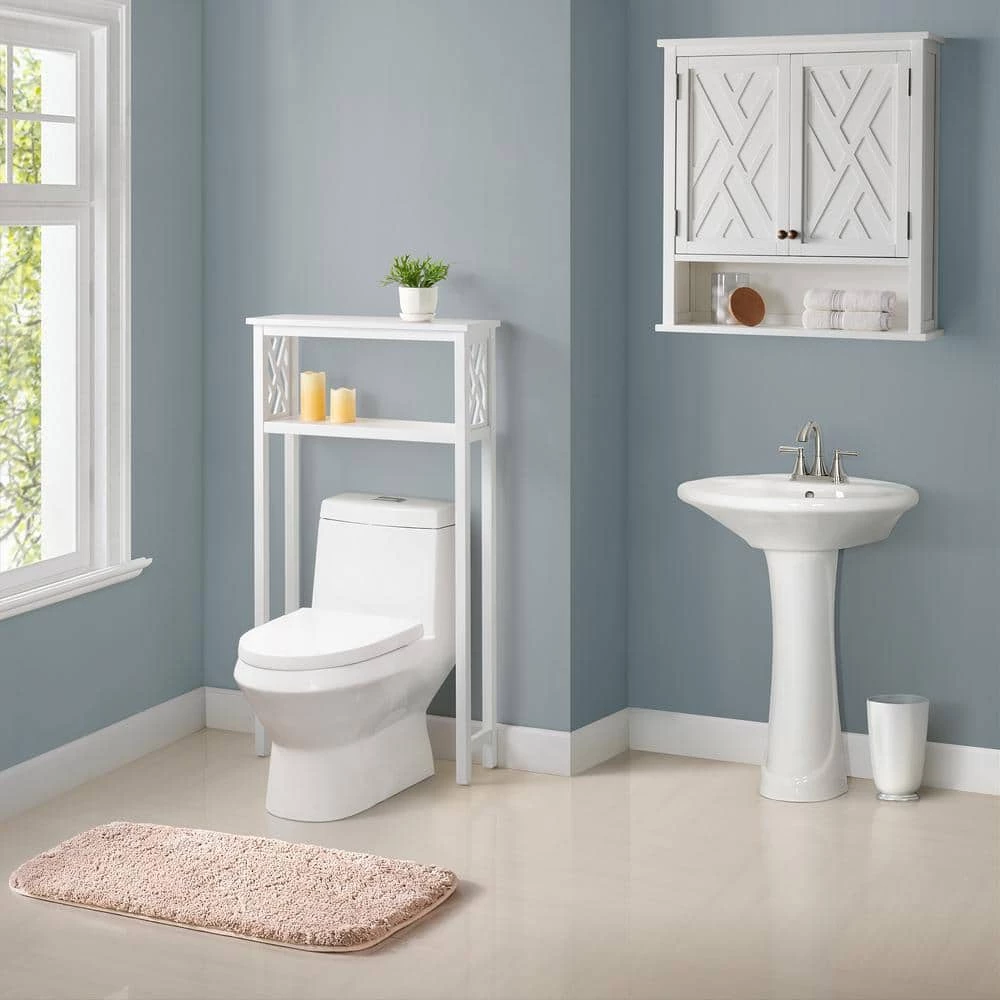 - Over-the-toilet storage unit and bath shelf and wall mounted cabinet add style and utility to your bathroom space