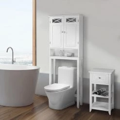 - 4 roomy shelves let you store toiletries, extra toilet paper, and dry towels