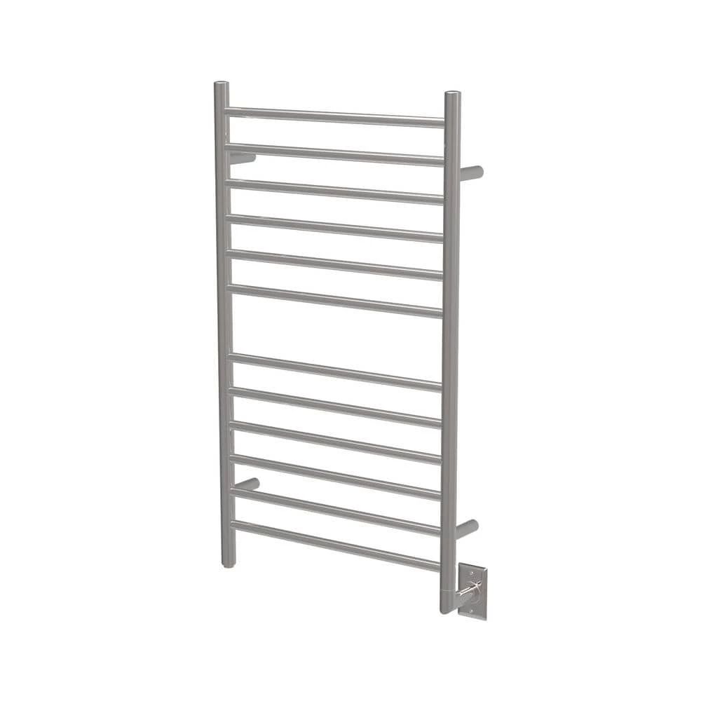 The Radiant collection features affordable, wall-mounted towel warmers. Wrap yourself in a warm, cozy towel or bathrobe after every bath or shower. Prevent your towel from developing that gross musty smell by drying it after every use and reduce how frequently you have to wash your towels. Choose between round or square bars as well as a shelf model; straight or curved horizontal bars, in a hardwired or plug-in variation – Amba has a style and size to fit all needs. Made of high quality 304 stainless steel, they are offered in a variety of finishes including brushed, polished, matte black and satin brass and feature integrated On/Off switches on the unit.