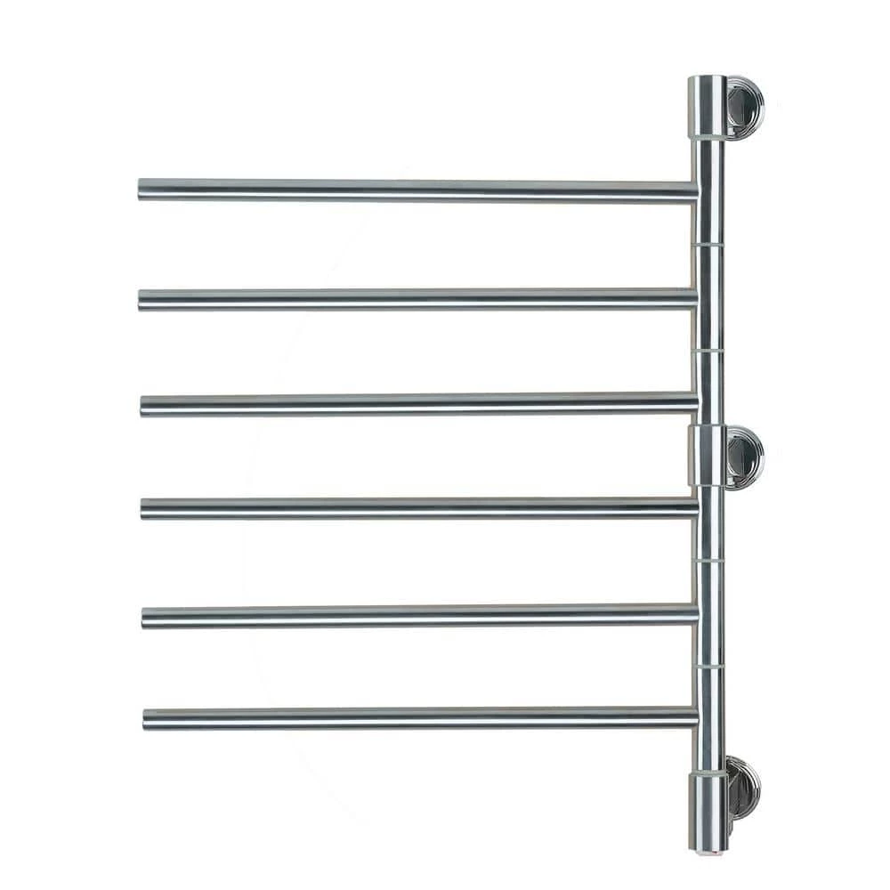 - Swivel hinges allow each bar to rotate 180 degrees independently. Plug-in towel warmer with 3ft cord; integrated on/off switch – separate timers can be added for more functionality