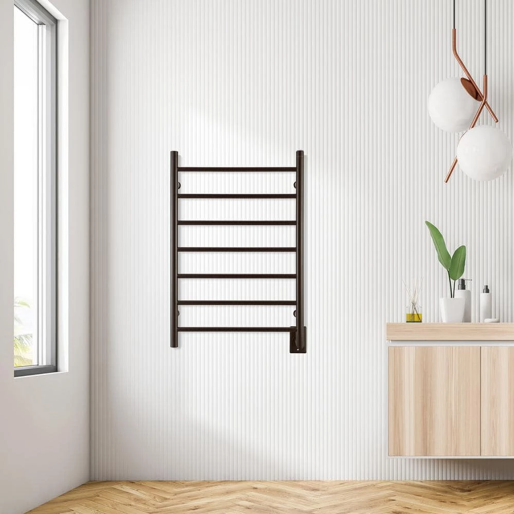 Enjoy spa-like luxury in your own home with the Ancona Comfort 7-towel warmer and drying rack. Expertly crafted in high-quality stainless steel with a rich oil rubbed bronze finish, this warmer is designed to blend perfectly with your existing decor and comes complete with all you need to hardwire it directly into the wall, so you won’t have to worry about any visible cords or wires. Beautiful in bathrooms and full of possibilities in the laundry room, exercise room, mudroom or bedroom, the Ancona Comfort 7 is an elegant and eco-friendly way to keep your towels and clothes dry, fresh and warm in any weather. You’ll wonder how you lived without it.