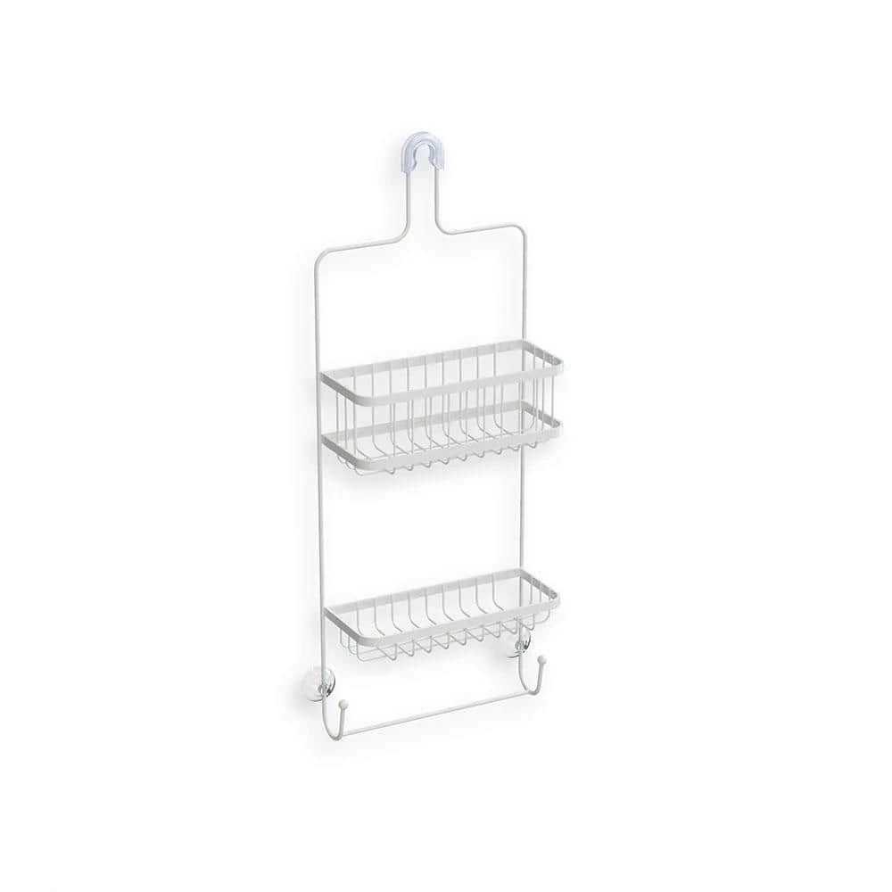 Keep all of your washing products in one spot and organize your bathroom accessories with the ASTRA 2-Tier Modern Aluminum Hanging Bathroom Shower Caddy Organizer. This space-saving storage system stores wet brushes, shampoo, conditioner, shaving cream, razors and more of your favorite bath items. Easily assemble by hanging this durable rack over a showerhead; the device will remain stable due to the anti-slip collar and included suction cups. Bring this lightweight and compact organizer with you anywhere you travel. This stable bathroom organizer comes with 2 wired baskets attached to provide plenty of storage space along with handy drainage slots to avoid messes. The caddy comes with bonus inverted bottle holders that will ensure you use up every drop of your favorite soap or shampoo. Plus, accessory hooks and a convenient washcloth bar that enable you to groom with ease and provide storage. Effortlessly organize loofahs, soaps, and body washes in your bathtub space with the ASTRA 2-Tier Modern Aluminum Hanging Bathroom Shower Caddy Organizer.