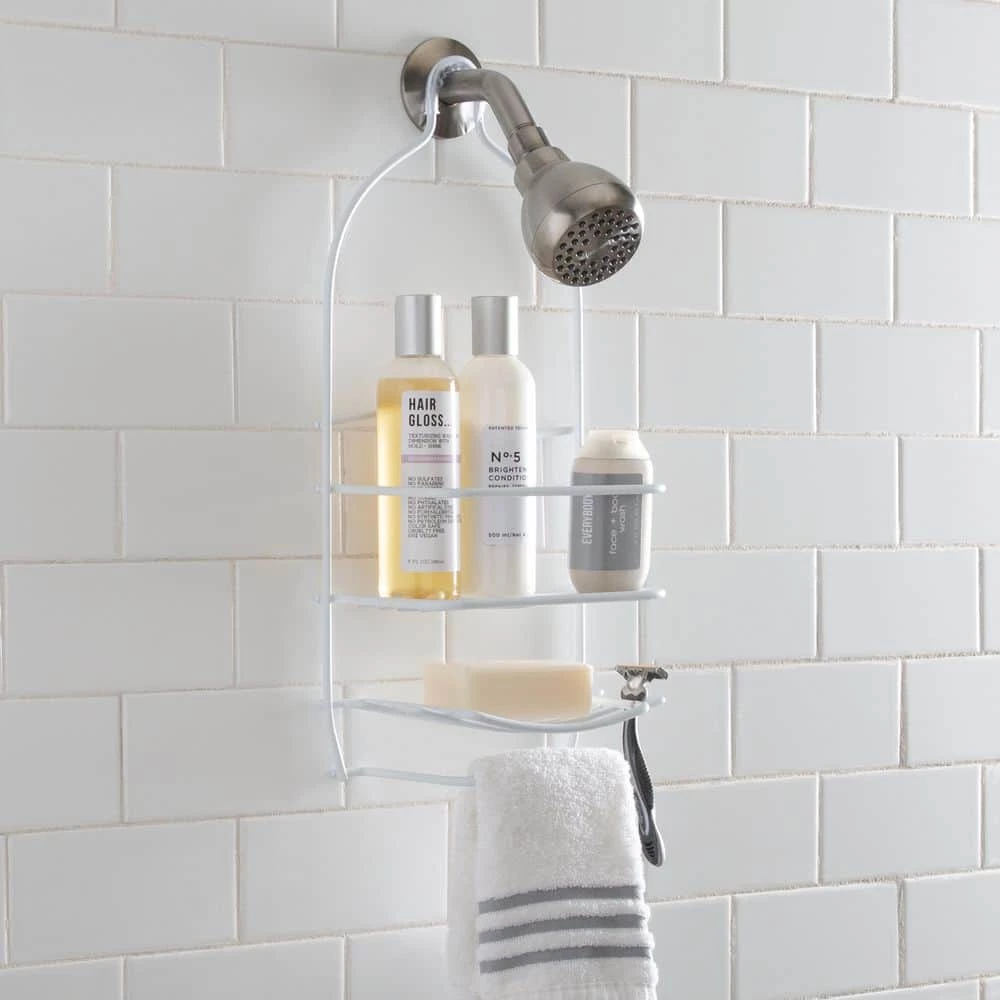 This Bath Bliss midsize shower caddy helps keep your personal bathroom items handy when needed. It’s design gives your bathroom a chic and modern look that will spruce up any bathroom setting. With it’s two tier design and four hooks, there is plenty of room for you items. Durable construction and rust resistant material makes it long lasting and reliable. Mounts easily in most showers. Protective rubber coating. Holds Various Bathroom Accessories Such as Bottles, Sponges, Razors, Soap and More.