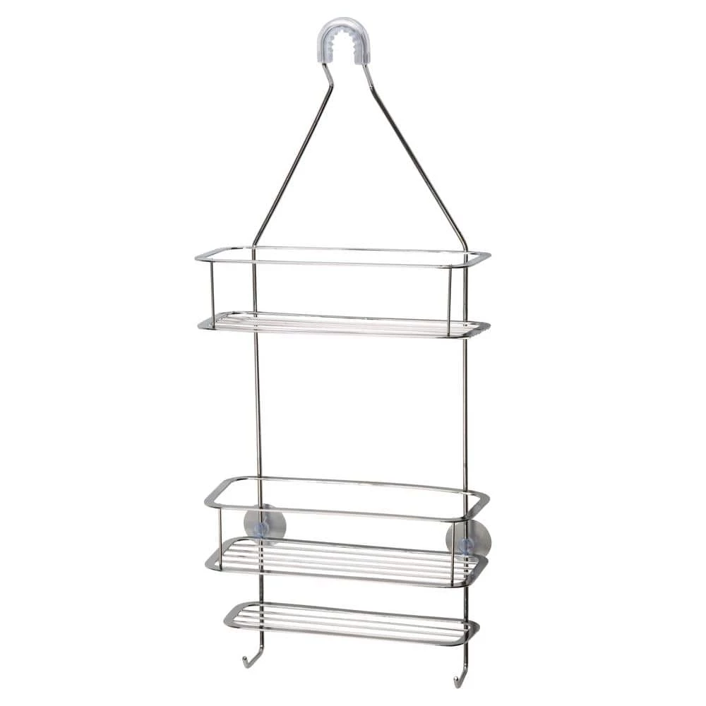 This Bath Bliss shower caddy helps keep your personal bathroom items handy when needed. It’s chrome design gives your bathroom a chic and modern look that will spruce up any bathroom setting. With it’s 3-tier design and 2-hooks, there is plenty of room for your items. Durable construction and rust resistant material makes it long-lasting and reliable. Mounts easily in most showers. Suction cups stick to most walls and extra-wide shelves adds to storage space.