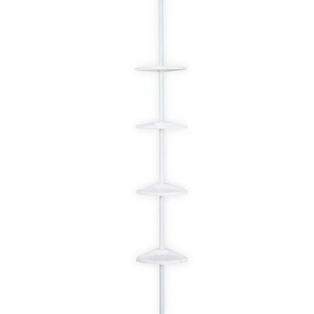 The ultimate corner storage system for your bath or shower. The pole extends up to 98 in. (2.5 m) H and is made of rust-proof aluminum. All 4-shelves are fully adjustable and self-draining. The Ulti-Mate Shower Pole is easy to install without tools and will leave your surface un-damaged.