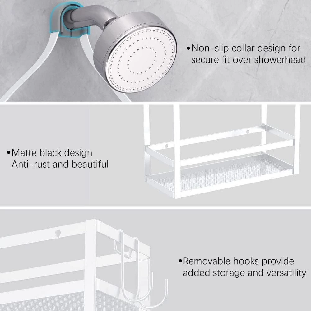 - Easy Installation &Versatile Mounting Clip: No hardware or drilling needed;Has non-slip collar for secure fit over showerhead, and includes suction cups to hold caddy in place against wall. Mounts over a shower head or over a shower door,so it works in multiple showers.