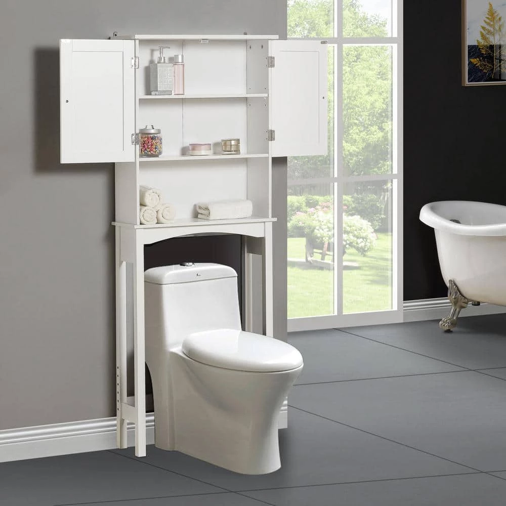 - Ample storage space: place this white bathroom space saver around the toilet and add bathroom storage space quickly and easily, the cabinet provides excellent storage solutions for bathrooms with limited space, it comes with both an open shelf and a hidden storage capacity and one shelf inside the cabinet is adjustable
