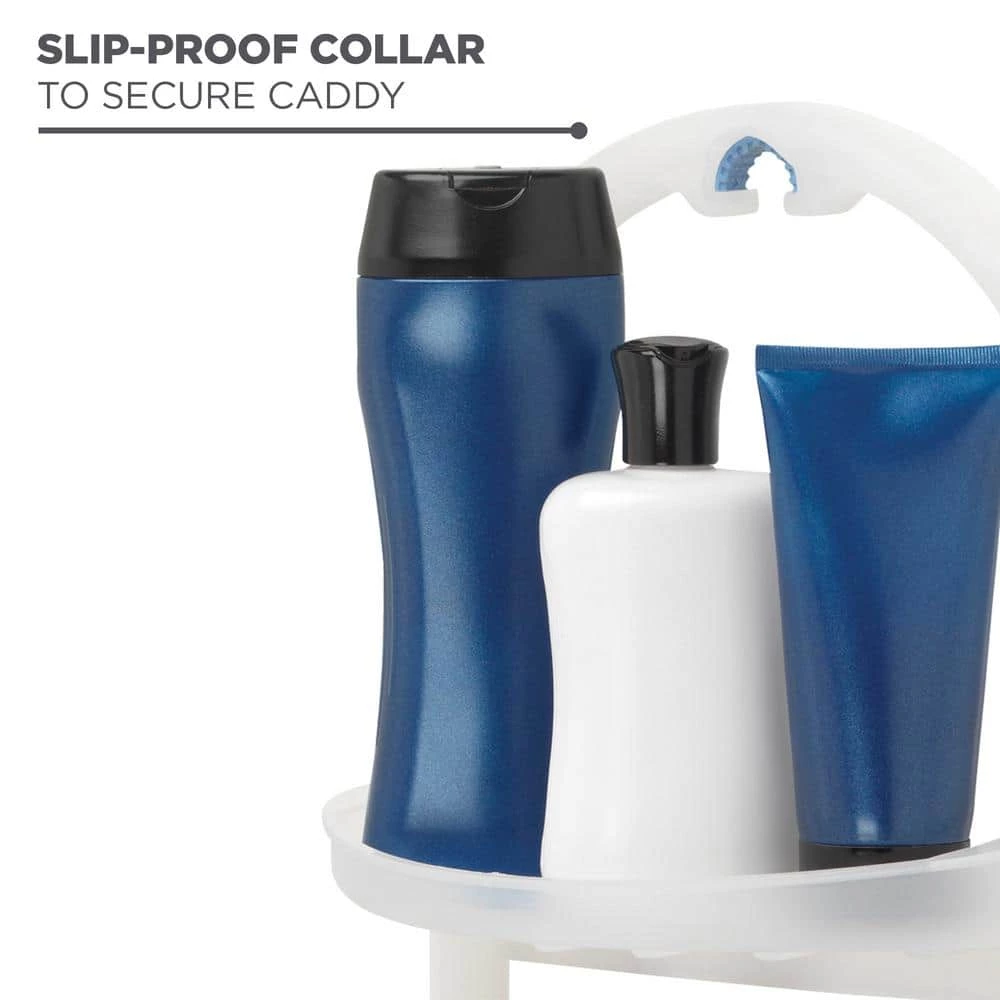 - Non-slip collar allows caddy to sit securely on any standard showerhead