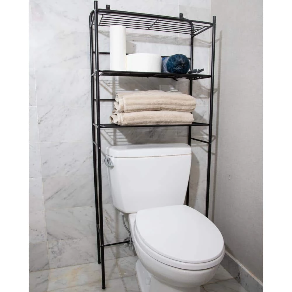 Beautify your bathroom with this space-saving over-the-toilet storage rack from Mind Reader Products. Designed to fit comfortably above your toilet, this sturdy iron rack features three shelves for storing your towels, extra toilet paper, tissues, hair products, makeup essentials, and other bathroom supplies, along with side rungs for hanging hand and face towels. The stylish wire design makes an elegant accent in any bathroom, and offers sufficient clearance to fit over most toilets, so you can add storage to your bathroom without losing extra floor space. The unit resists rust and mildew, and is easily wiped clean with a soft, damp cloth.