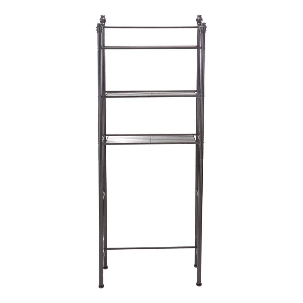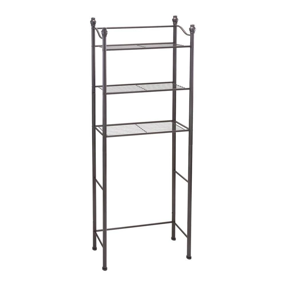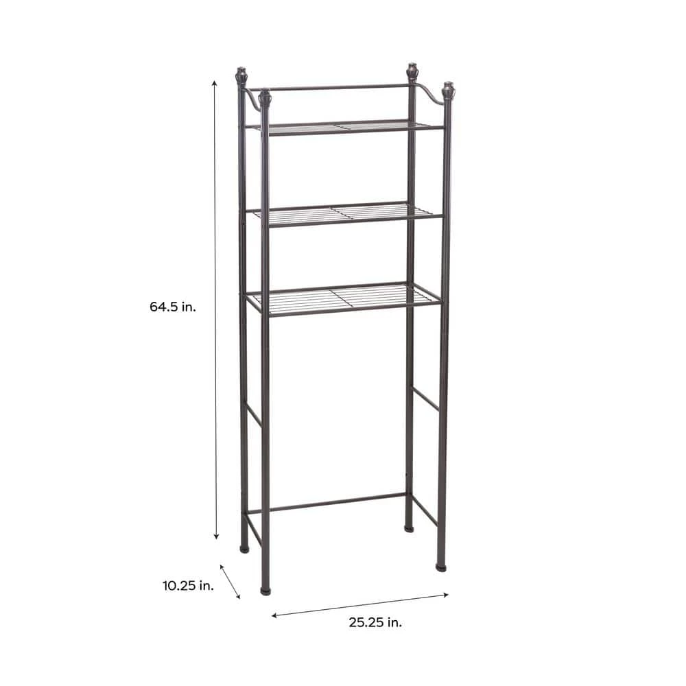 This Organize It All Over the Toilet Space Saver Rack is stylish and functional for almost any bathroom. It adds 3 additional storage shelves to an otherwise unused area of the bathroom; above the toilet. This rack is perfect for storing toilet paper, towels and other bathroom essentials out of the way. The wire racks and bronze frame add stability and style to this piece.