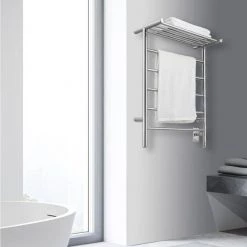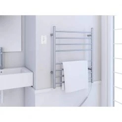 Ancona Comfort 10S 10-Bar Hardwired Electric Towel Warmer with Wall Timer in Brushed Stainless Steel