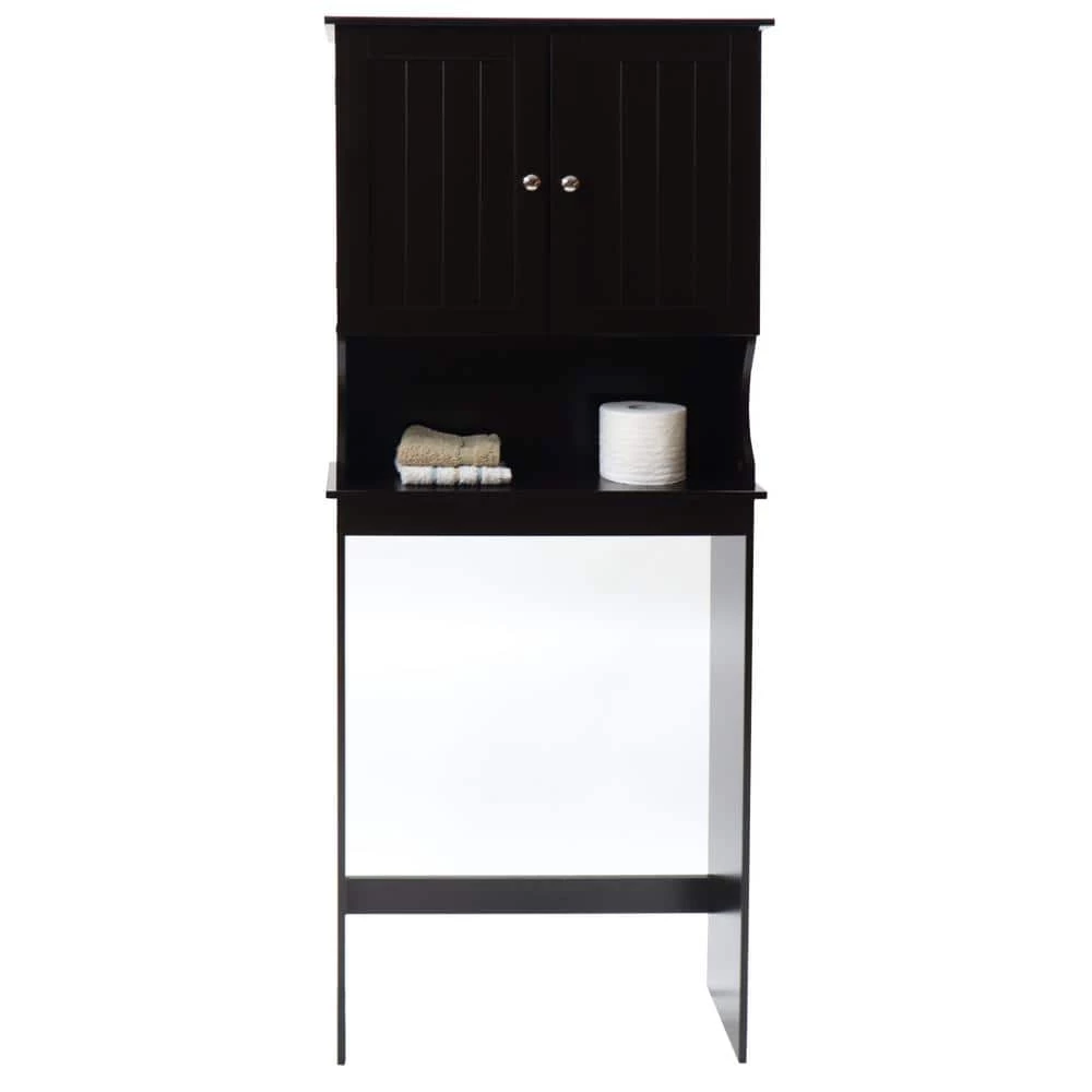 - Two door cabinet space saver with adjustable shelving (stylish hardware included) Four total shelves: Open Bottom and Top shelves (fixed), Two center cabinet shelves (adjustable to 3 positions)