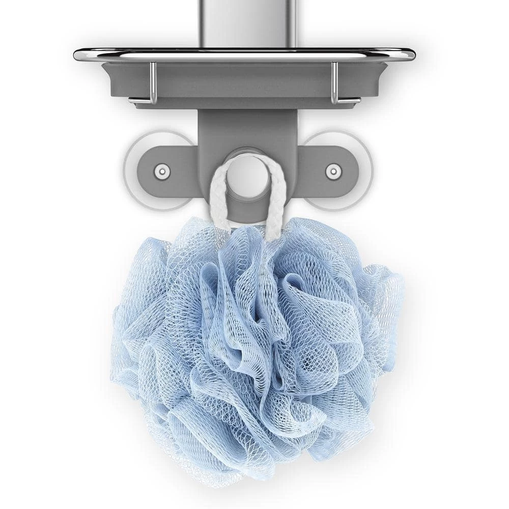 simplehuman’s redesigned adjustable shower caddy is sleeker, neater and more secure. The shelves are fully adjustable and even easier to reposition with the new quick-adjust dial. We added a moveable divider to keep small items from falling over. And the quick-dry soap dish drains water completely so soap stays dry and lasts longer. Installation is secure and hassle-free with a rubberized showerhead clamp and twin pivoting suction cups. Constructed from stainless steel and anodized aluminum so it is rust-proof and easy to clean.