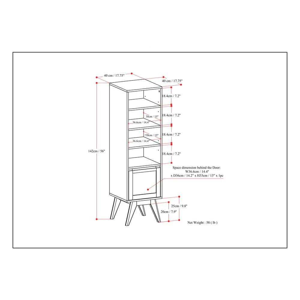 - Dimensions: 15.75 in. D x 15.75 in. W x 55.9 in. H