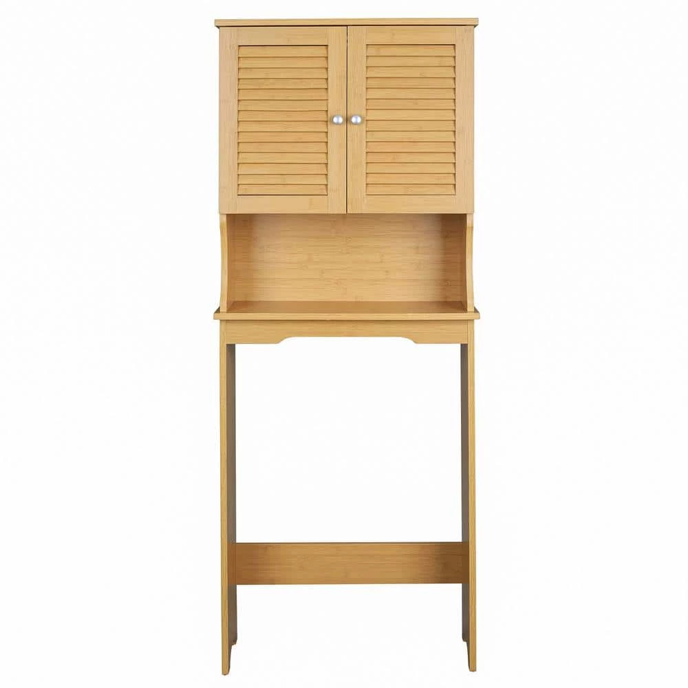 This cabinet made with good quality imitation bamboo material, durable and sturdy. Weaving appearance effect, simple without losing individuality, can easy match with any styles bathroom. The open shelf combines with the cabinet, can give you more place for storage, you can put your shampoo, soap, tissue or other little things on it.