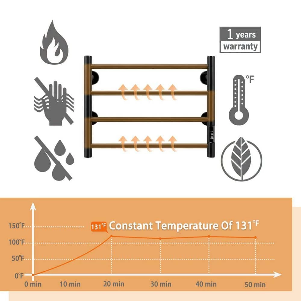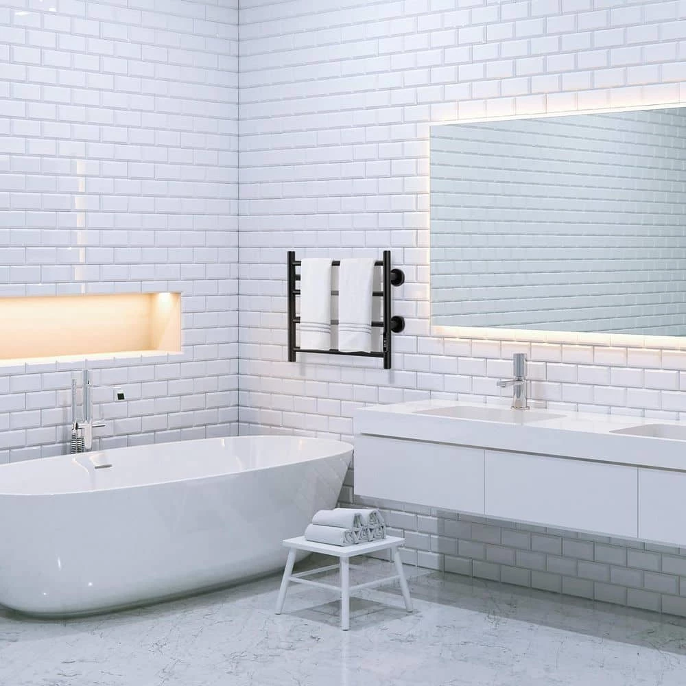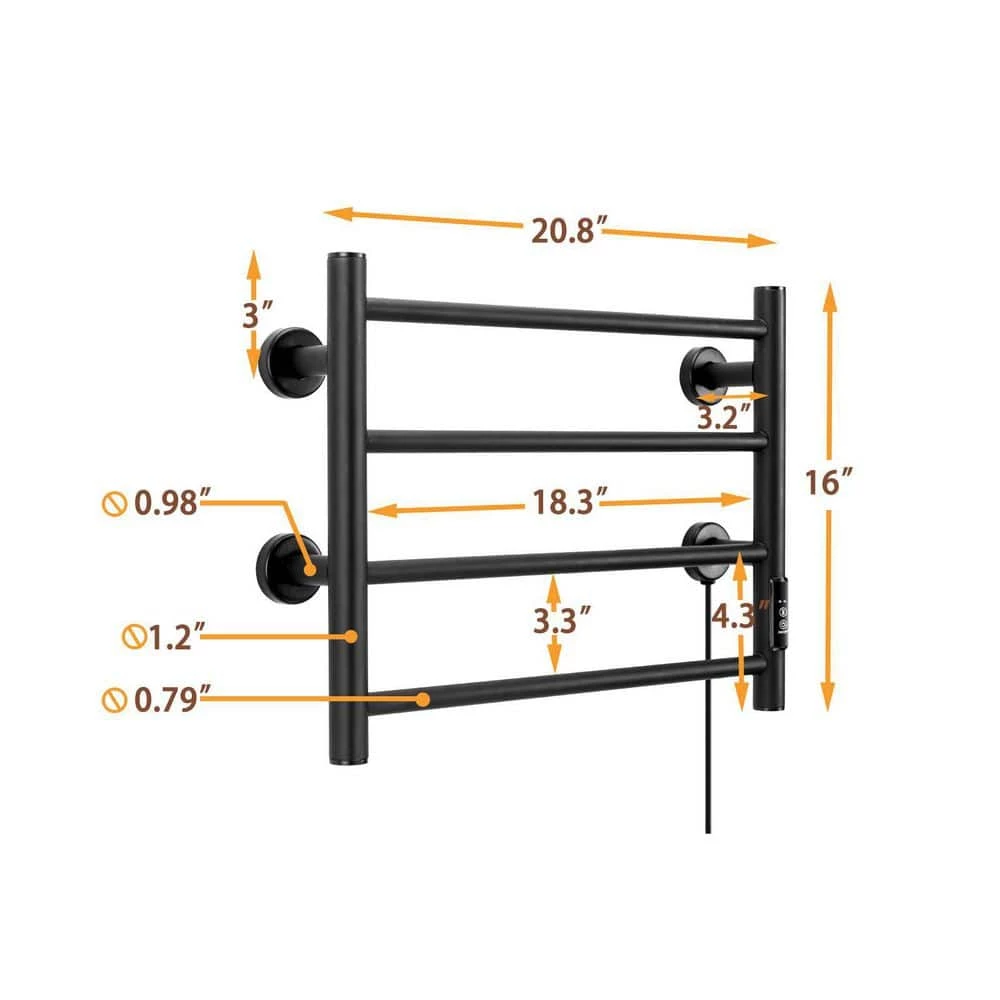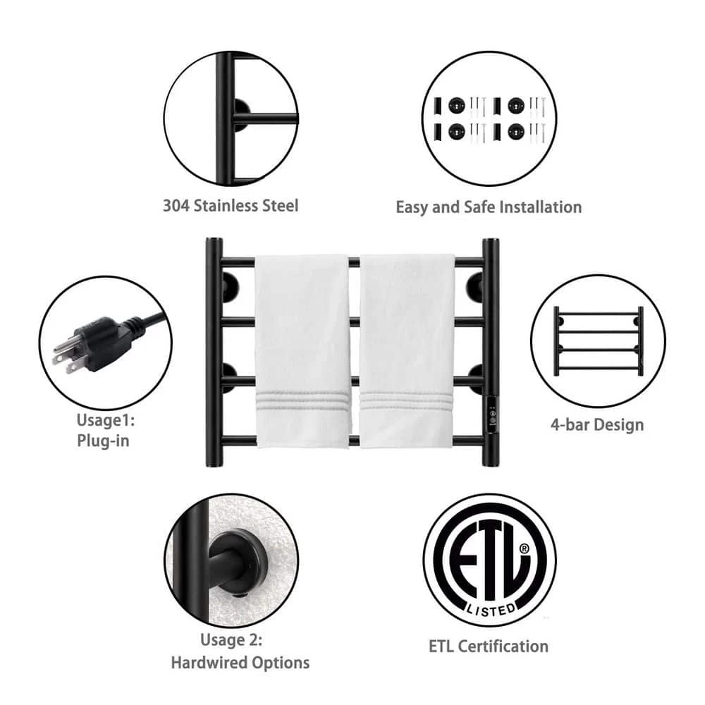 Unbranded 4 Bars Wall Mounted Heated Towel Racks with Timer Black