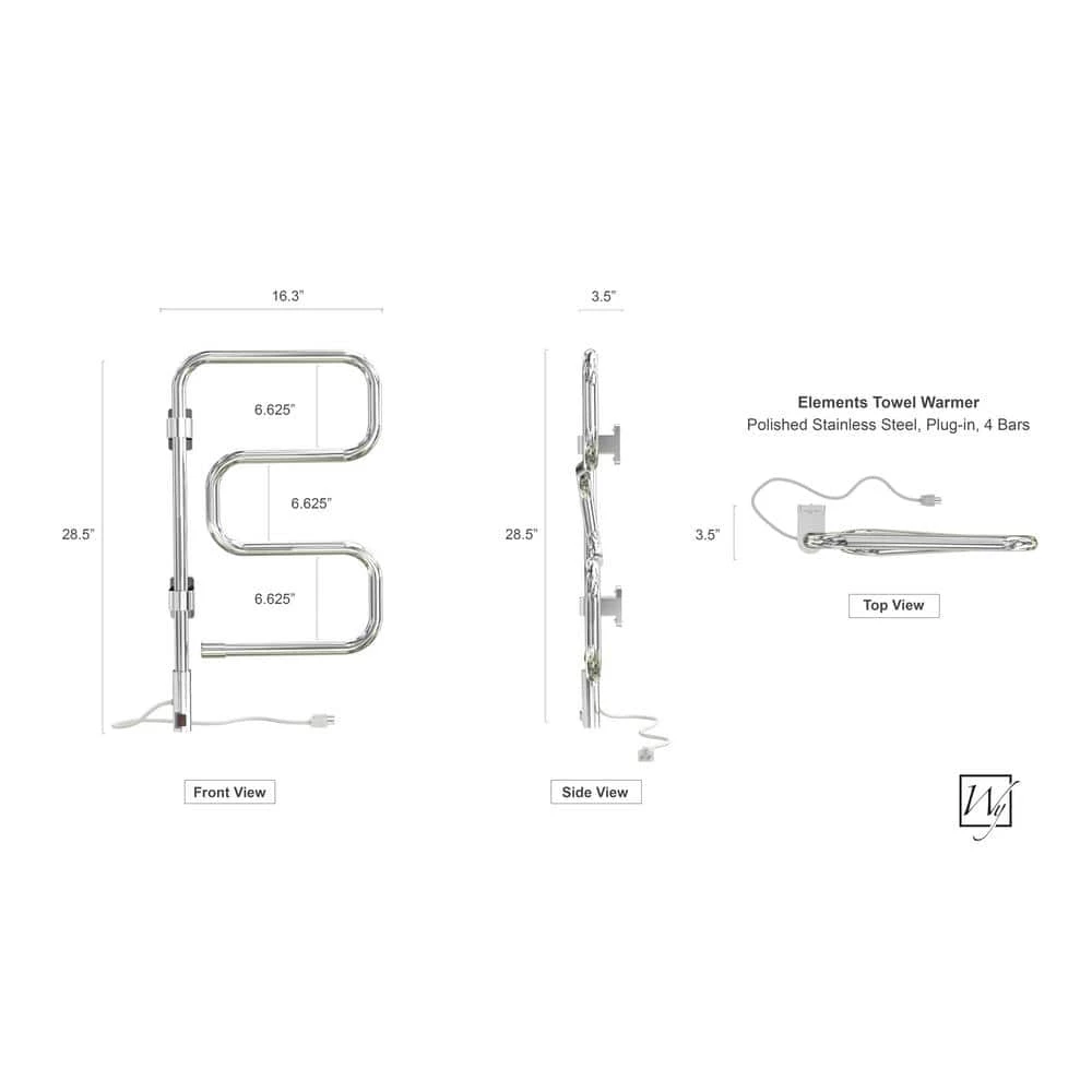 - Generous 4-bar design: the elements towel warmer uses 4 polished chrome stainless steel bars to evenly distribute heat, warming up to 2 towels