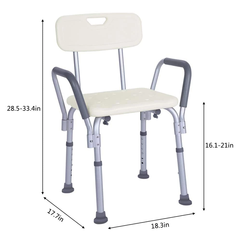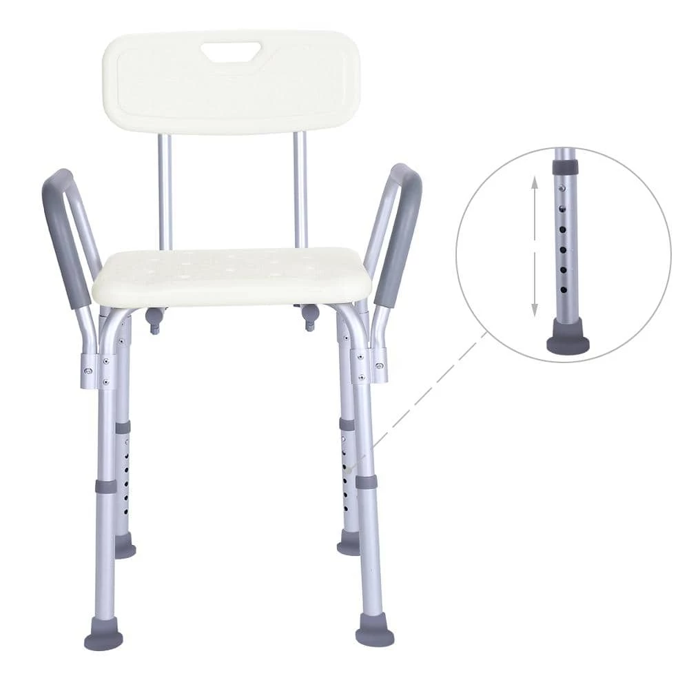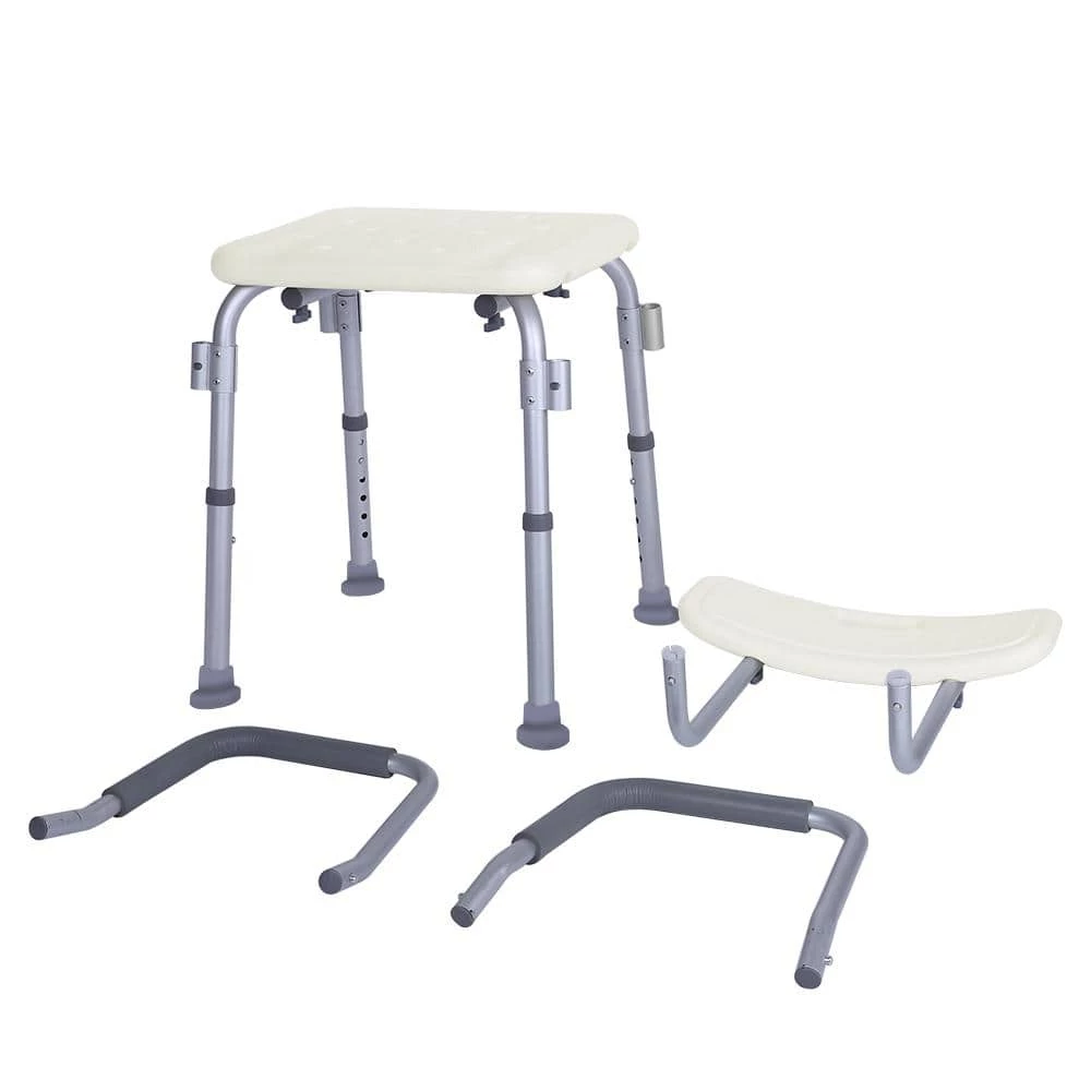 This Aluminum Alloy Bath Chair is an excellent choice. It is made of high quality plastic and rubber; aluminum alloy material, with a light weight and practical design. Moreover, Standard adjustable, so that you can adjust to the most comfortable height. The chair foot mat also features anti-skidding and anti-rust design, so you can rest assured to buy it.