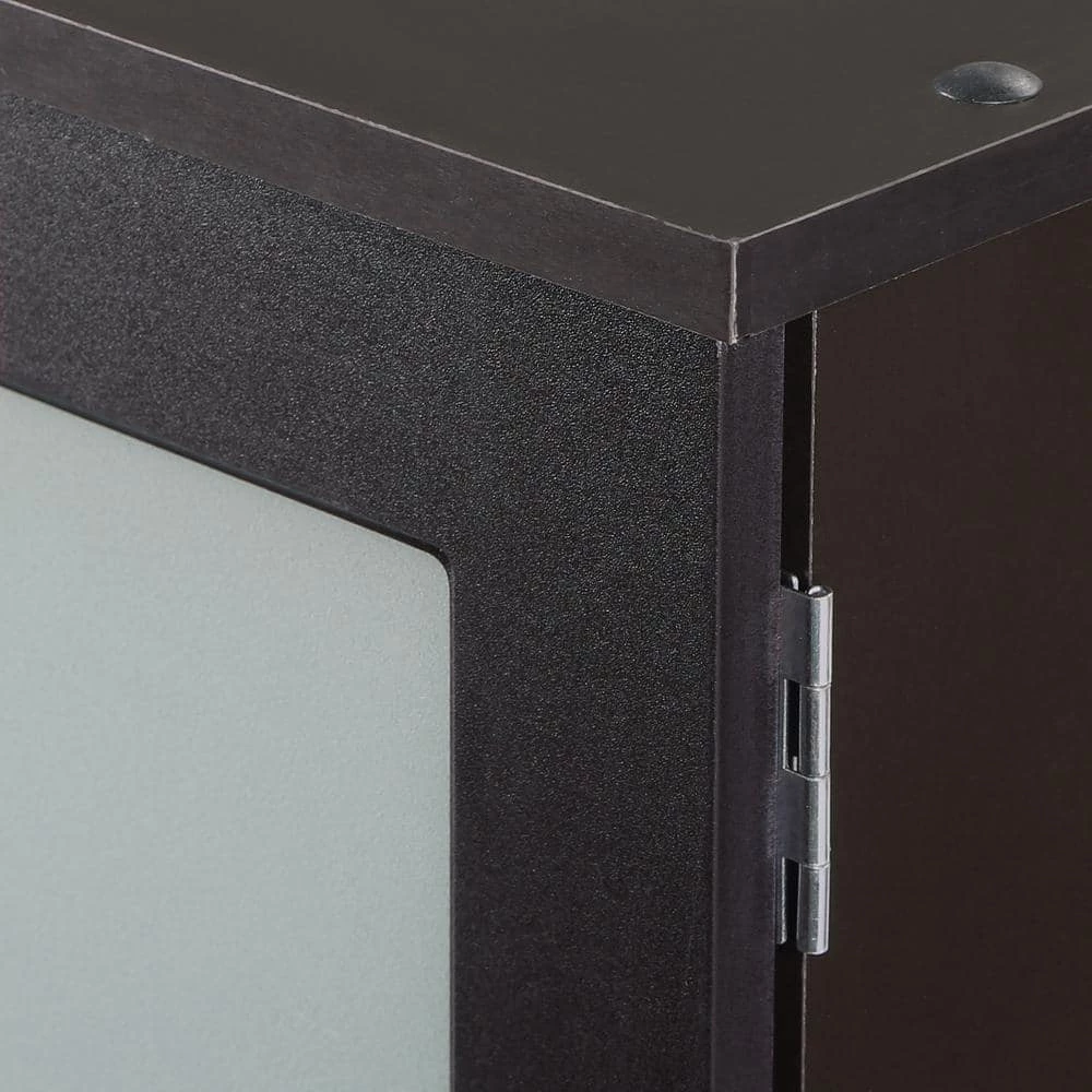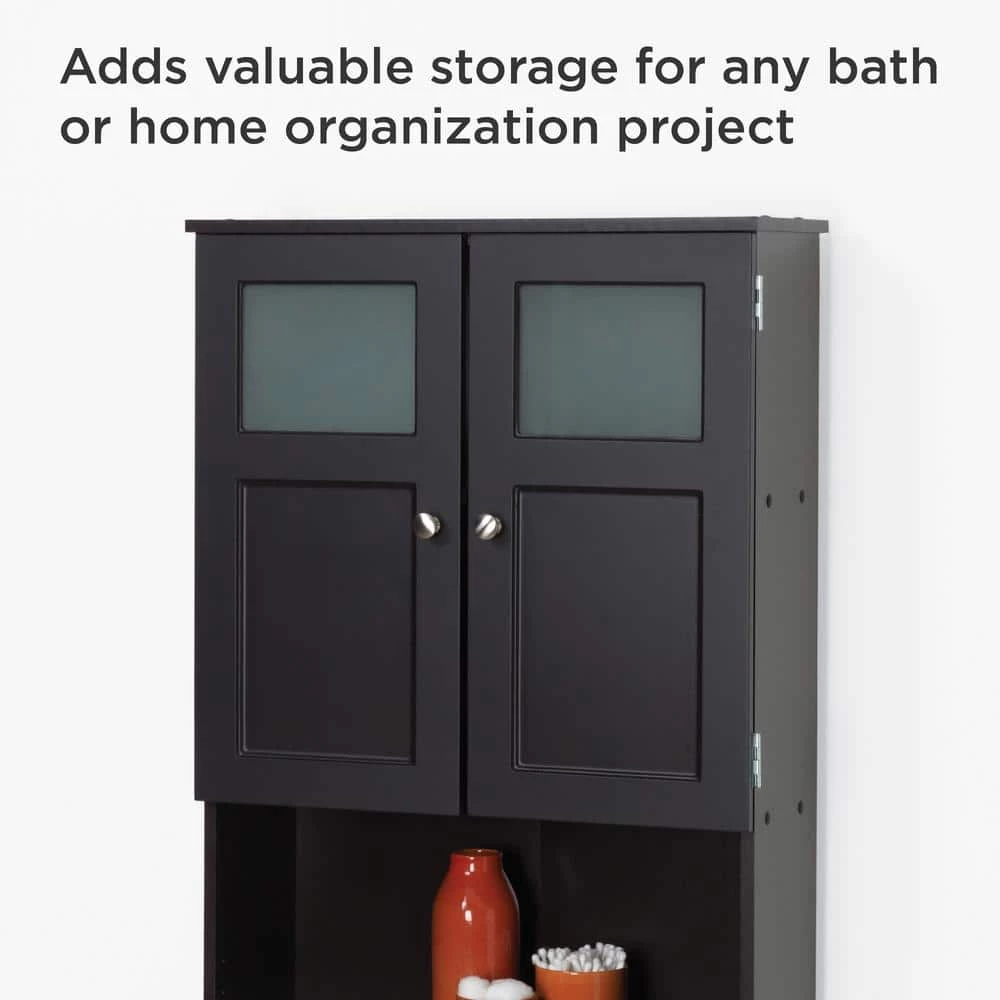 - Espresso wood finish and polished chrome hardware complement almost any bath decor